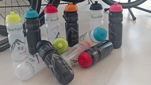 Our SunBikeTours Tacx drinking Bottles 750ml (New,/ BPA free / neutral taste) can also be purchased 5€/piece. The bottles come in black transparent & transparent.